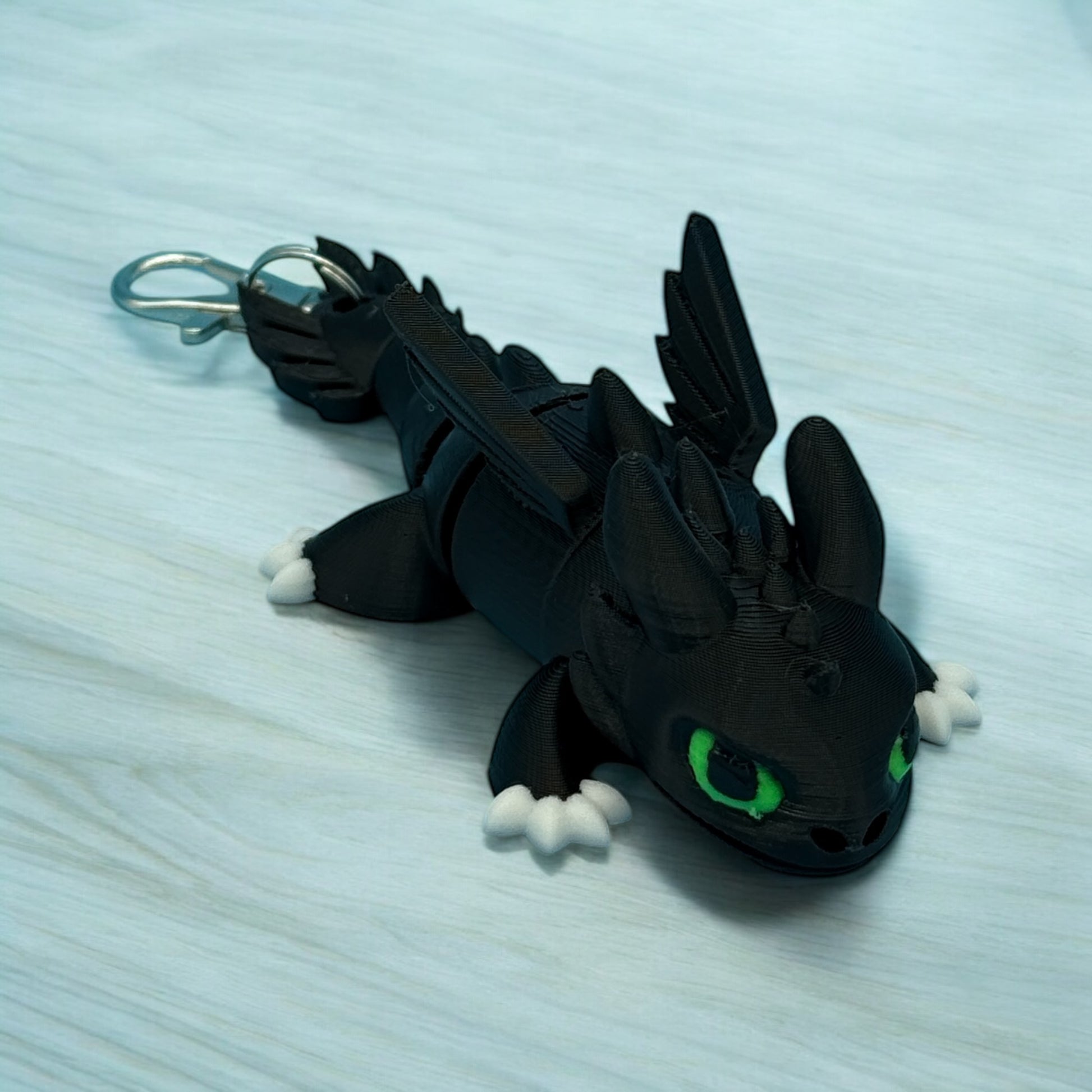Add some bite to your look with the Night Fury Bag Charm! This quirky accessory is 3D printed for a unique touch. Perfect for any dragon lover, it's sure to make a statement on your bag or keys. (Warning: May attract actual dragons)